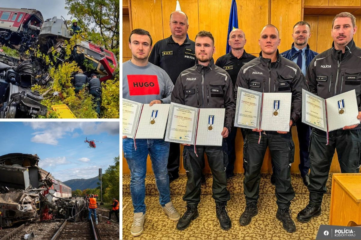 FOTO: Rožňavskí policajti, ktorí neváhali pomáhať cestujúcich pri tragédii v Jablonove, získali ocenenie za svoju odvahu