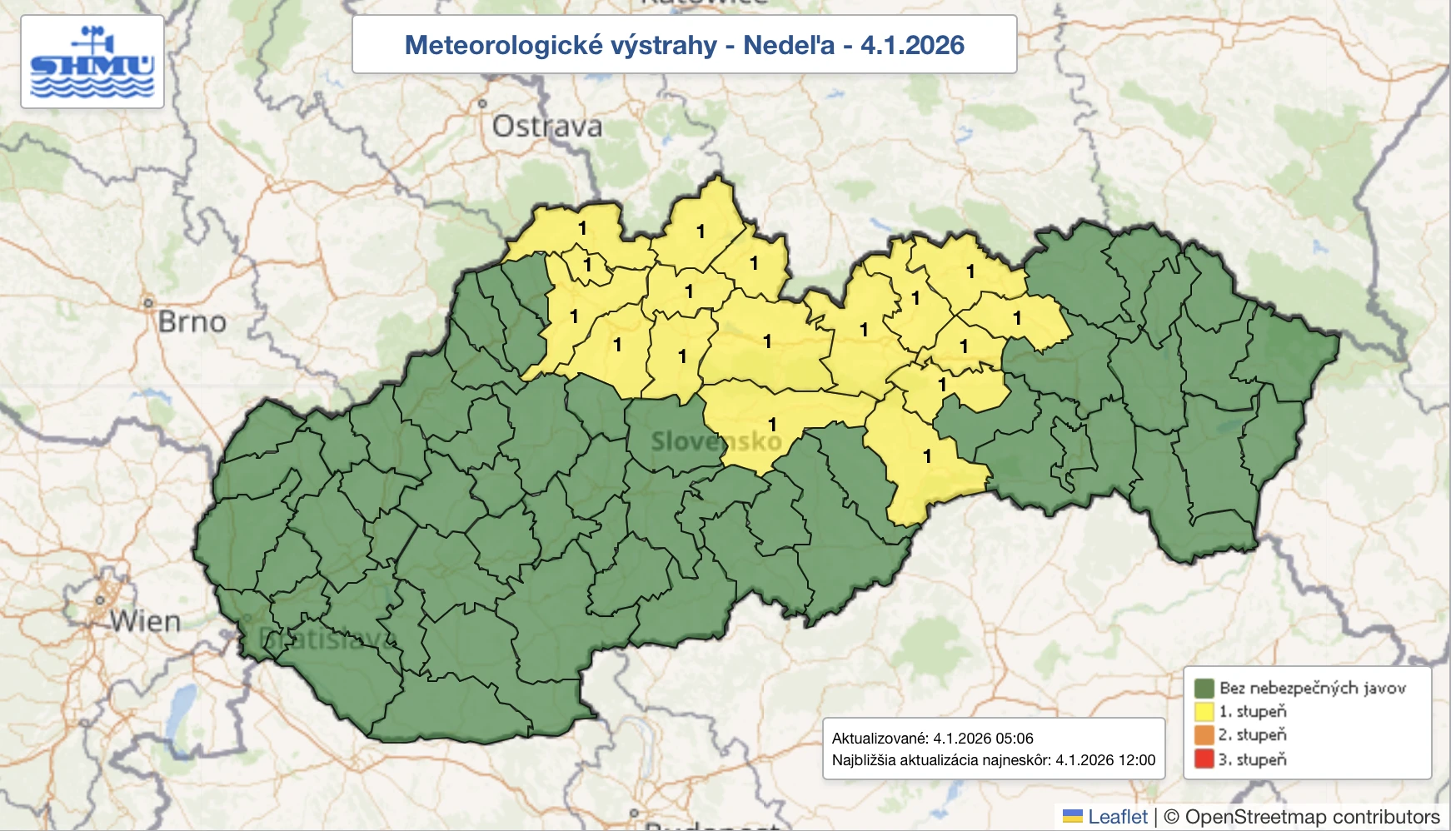 Slovenský hydrometeorologický ústav upozorňuje na výstrahy prvého stupňa pred nízkymi teplotami, ktoré boli vydané aj pre východné Slovensko. Konkrétne platia od nedele 4. januára 21:00 hod. do pondelka 5. januára 8:00 hod. pre okresy Rožňava a Spišská Nová Ves.