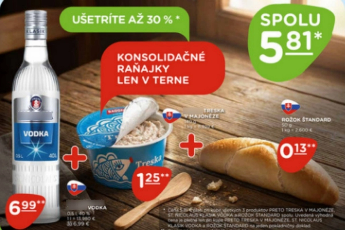 Známy slovenský reťazec poburuje nezvyčajným konsolidačným kombom z čias minulých, vodka k treske na raňajky?