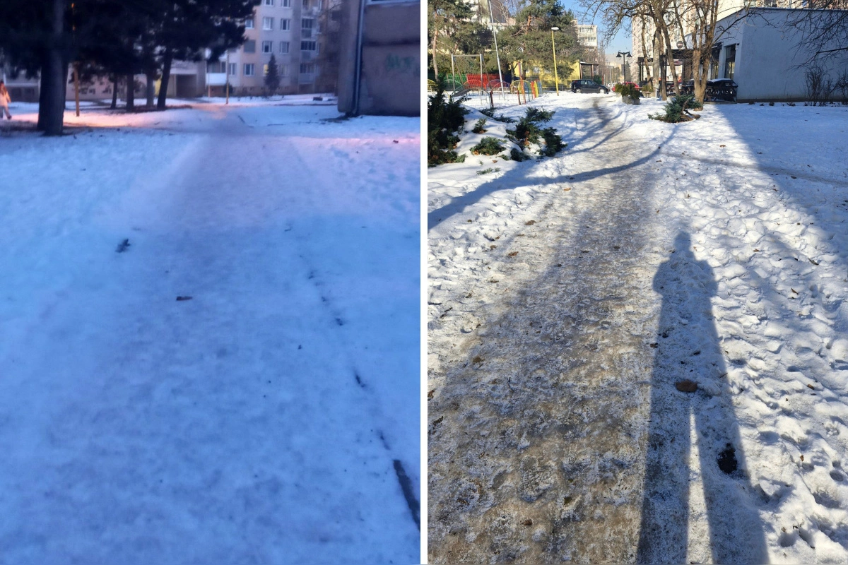 Najväčší problém hlásia obyvatelia na sídlisku Železníky. „Neviem, komu to mám oznámiť, ale už som dvakrát spadla na chrbát. Nedá sa po tom chodiť, je to veľmi šmykľavé a celý chodník je zamrznutý,“ napísala Tunde vo svojom príspevku s tým, že situácia je podľa nej nebezpečná a dlhodobo neudržateľná.