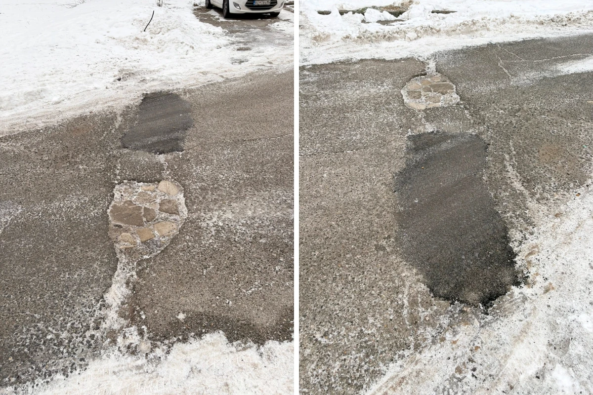 Na problém upozornil obyvateľ mesta na sociálnej sieti s tým, že druhú dieru si už pol roka riešia samotní rezidenti. „Je toto normálne?! Kalinovská 20, výjazd z parkoviska. A tú druhú dieru už pol roka opravujú rezidenti…“ odkázal v príspevku, ku ktorému pripojil aj fotografie aktuálneho stavu vozovky.