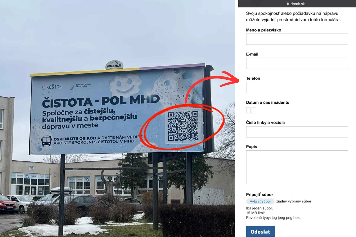Po celých Košiciach sa preto v blízkosti zastávok MHD objavili billboardy s QR kódom. Po jeho naskenovaní sa cestujúci dostanú na jednoduchý formulár, kde môžu uviesť číslo linky a vozidla, dátum a čas incidentu a pridať aj fotografiu. „Vaša spätná väzba je kľúčová pre rýchlu nápravu a ďalšie zlepšovanie kvality našich služieb,“ dodáva dopravný podnik.