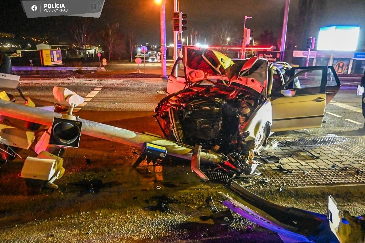 Vodič BMW nabúral v Košiciach do semaforu a ťažko sa zranil, dychová skúška policajtov nemilo prekvapila