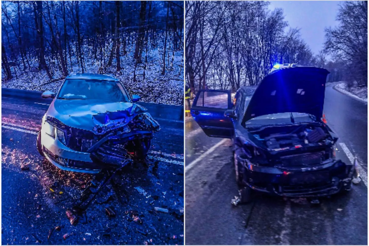 FOTO: Za Ďurďošíkom v smere na Košické Oľšany došlo k čelnej zrážke áut, jeden pruh je neprejazdný