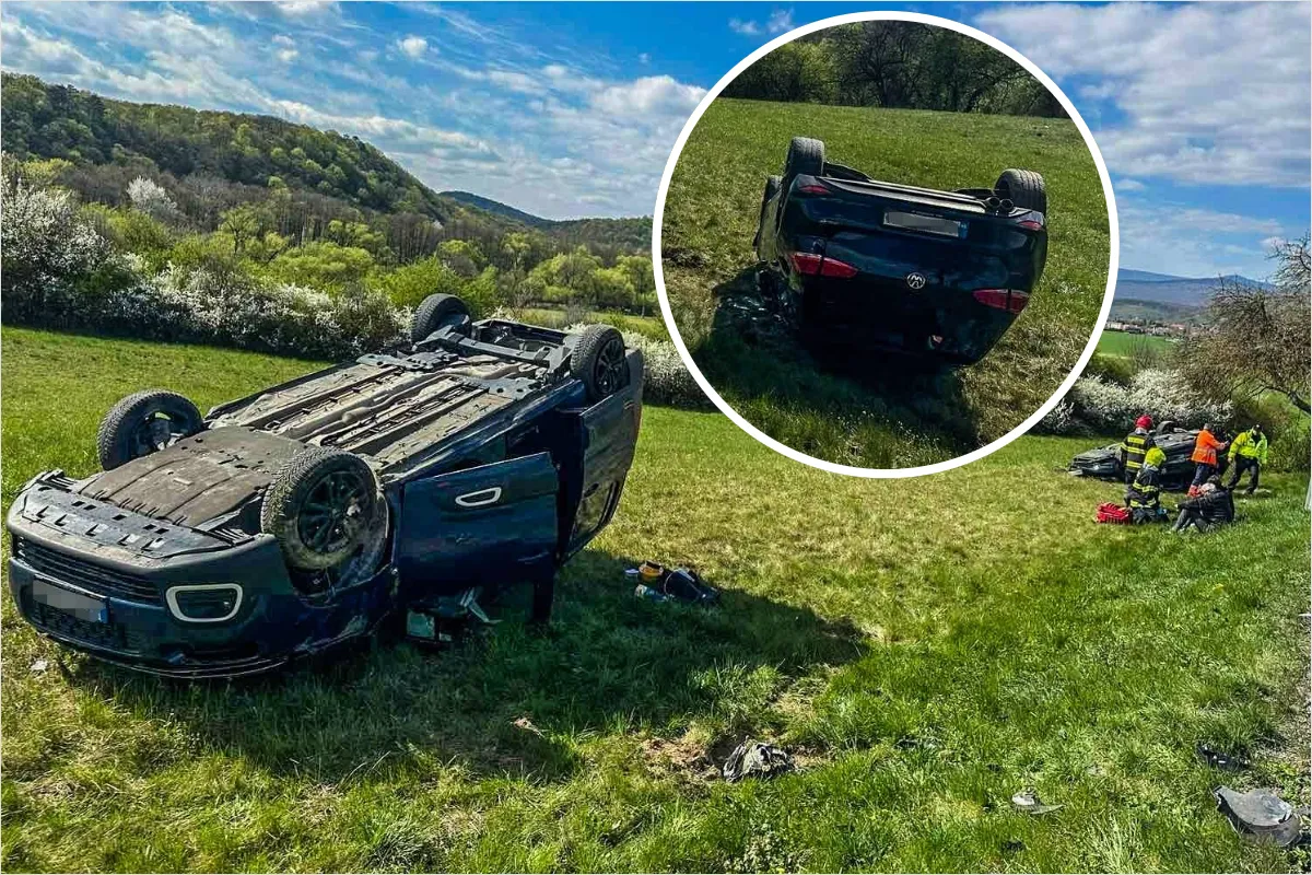 Za Jasovom sa čelne zrazili dve autá, obe skončili prevrátené na streche, letel tam záchranársky vrtuľník