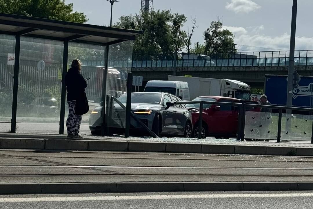 Pri nehode na VSS skončilo auto na električkovej zastávke. Odniesli si to plechy aj zábradlie