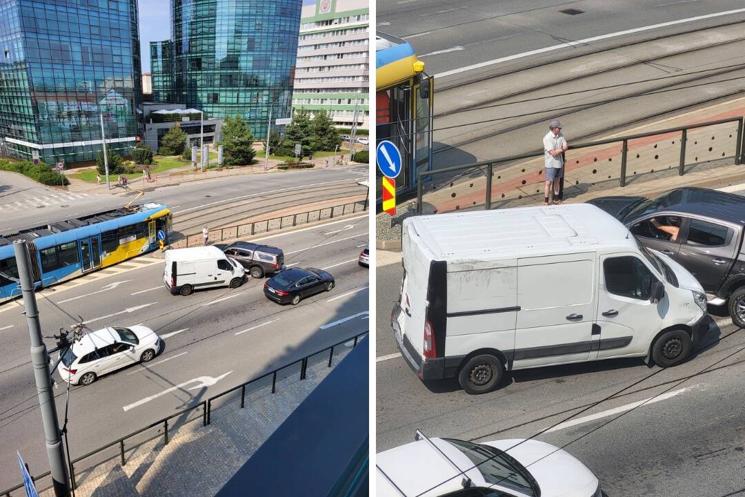 „Električka posunula dodávku do Mitsubishi, jeden pruh je voľný,“ napísal v príspevku.