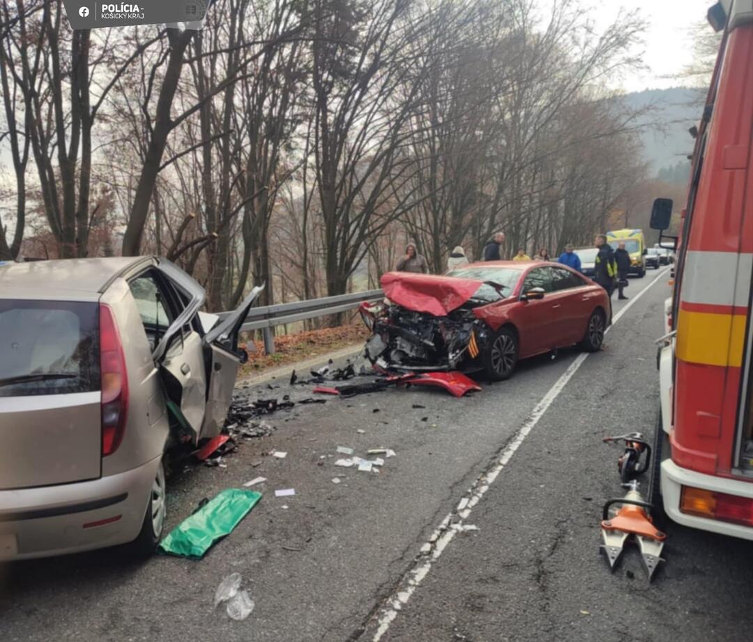 Za Veľkým Folkmarom sa čelne zrazili dve autá. Vodič bol zakliesnený, spolujazdkyňa utrpela vážne zranenia