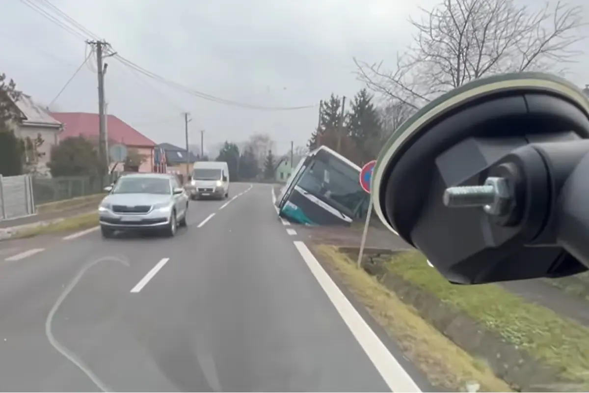 VIDEO: V Egreši skončil autobus v priekope. Nachádzali sa v ňom aj cestujúci