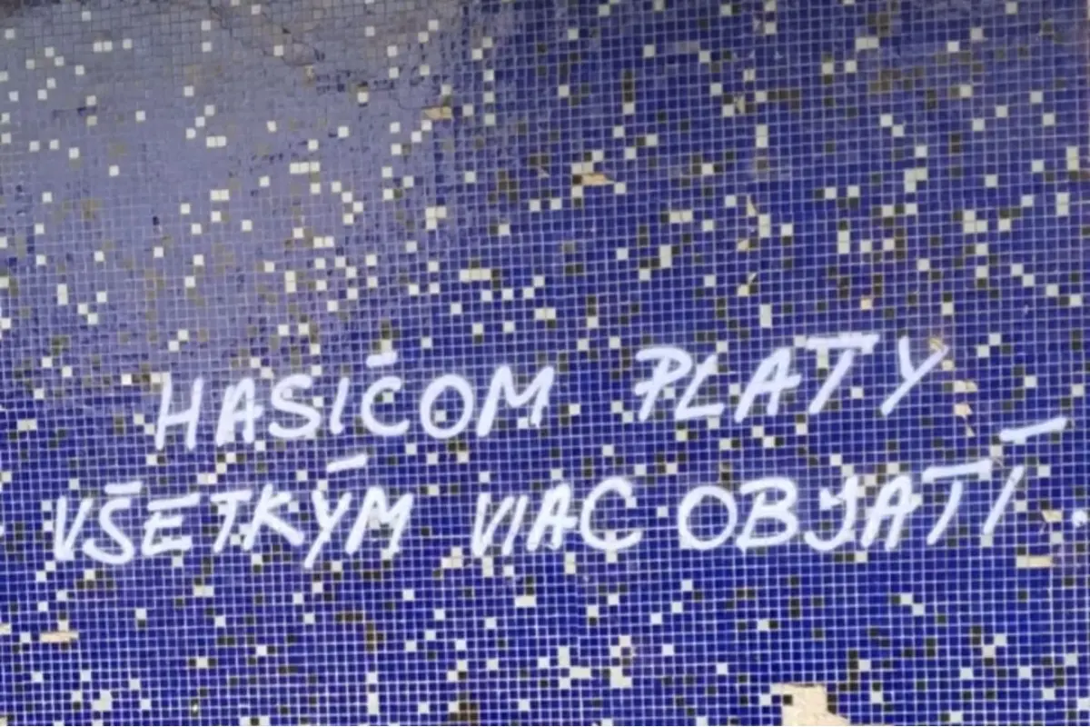 „Hasičom platy, všetkým viac objatí,“ nasprejoval niekto na stenu. Fotografia sa objavila v skupine Košice- kuriozity a absurdity, kde si členovia zdieľajú rôzne zaujímavé, ale aj bizarné situácie z Košíc.