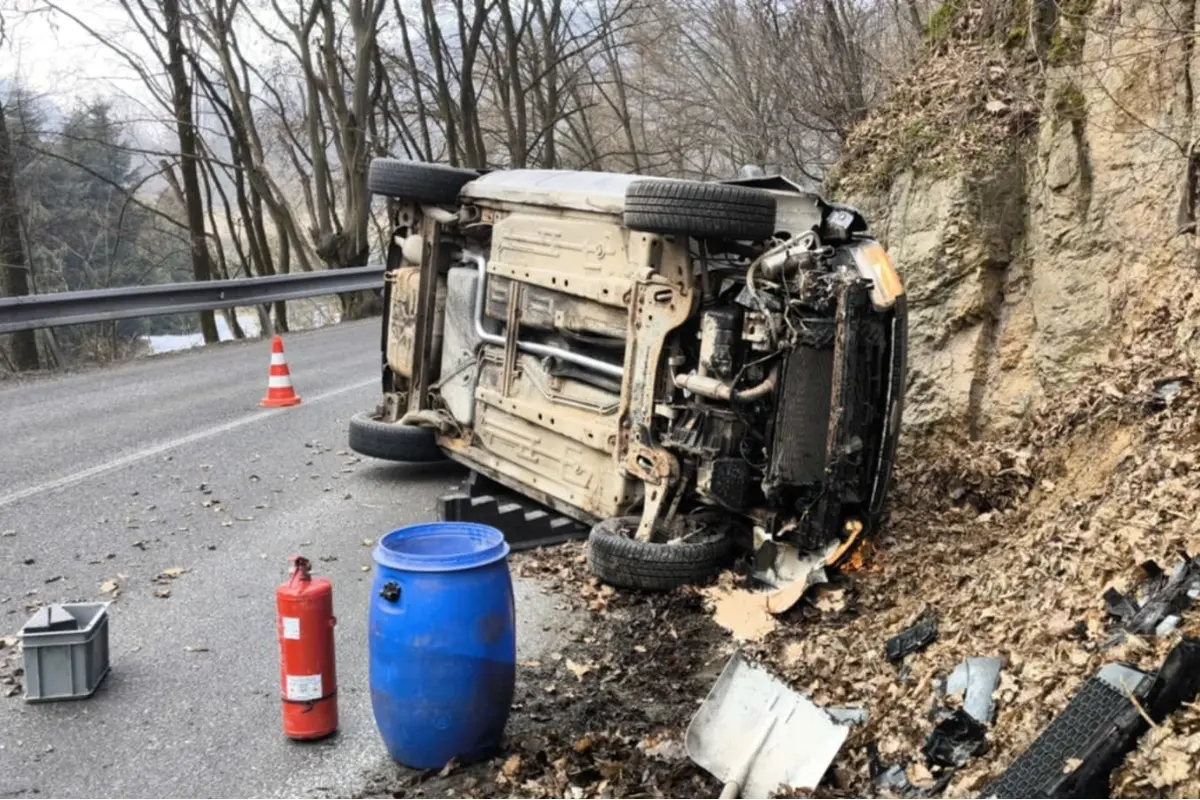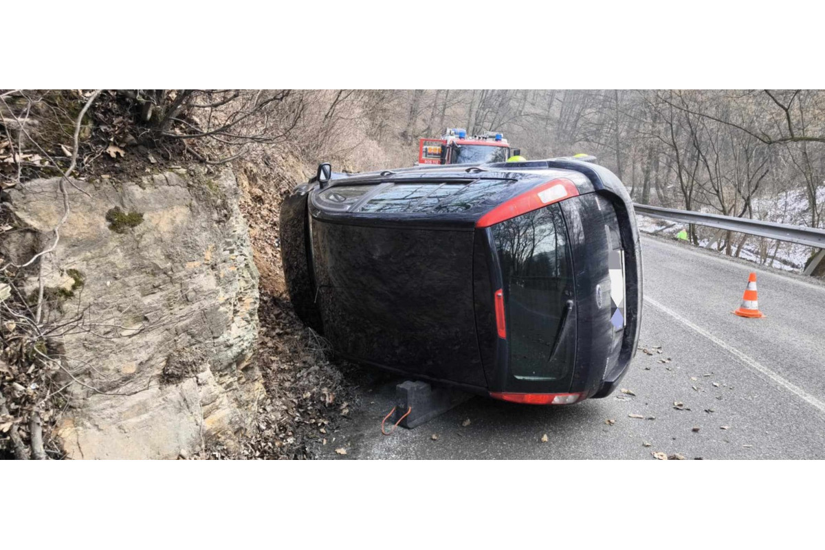 FOTO: Pri kameňolome v smere do Družstevnej zostalo po nehode prevrátené auto, mala v ňom sedieť žena s dieťaťom