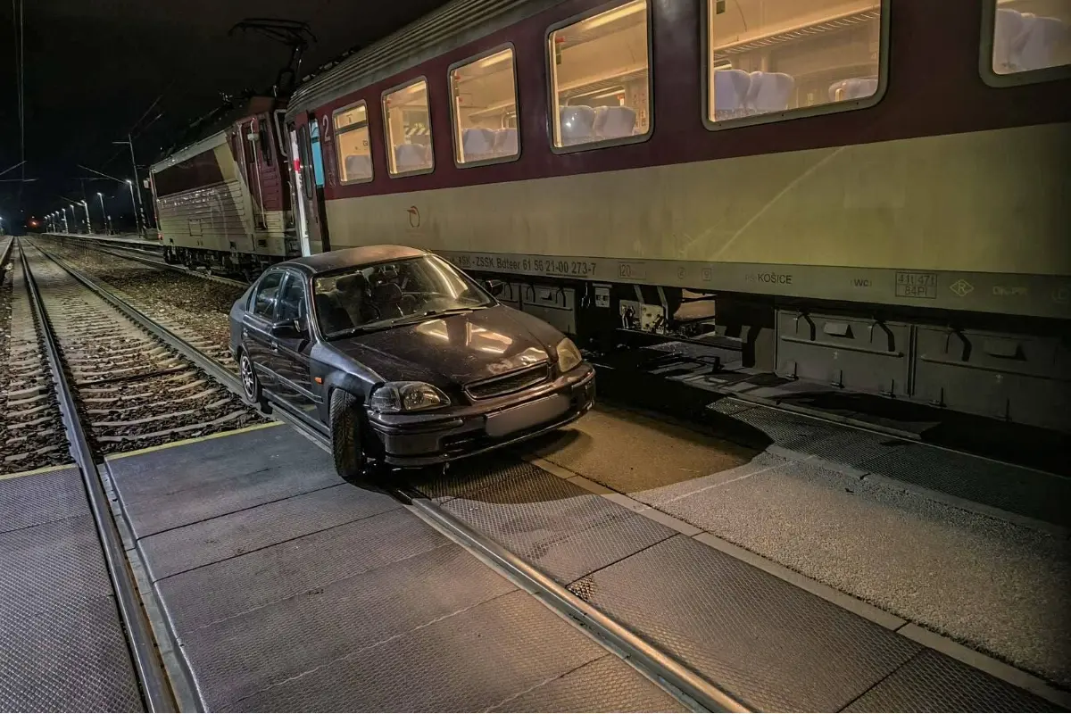 FOTO: Na železničnom priecestí v Ťahanovciach narazil vlak do „auta duchov“. Nemalo posádku a na trati bolo odparkované