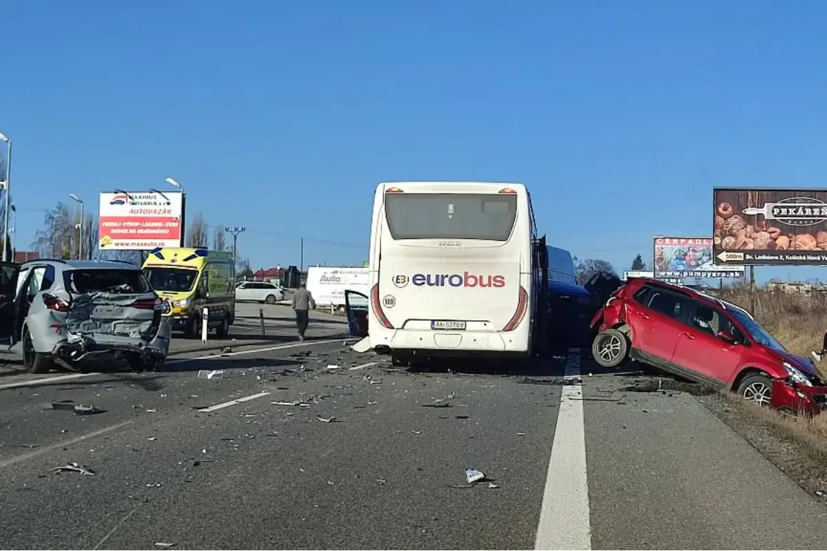 Hromadná zrážka autobusu a šiestich áut pri vjazde do Košíc, na mieste sú zranení, úsek bol dlhú dobu neprejazdný