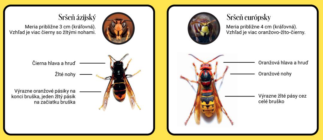 Ak sa však detailnejšie pozrieme na fotografiu, ktorú zverejnila žena z KVP, je vidieť značné rozdiely od sršňa európskeho. Sršeň ázijský sa od ostatných európskych druhov líši sfarbením aj veľkosťou. Je o niečo menší, nohy má výrazne žlté a sfarbenie na hlave a hrudi je prevažne čierne. Na brušku má široký oranžový pás. V tomto prípade teda možno jednoznačne vylúčiť, že by išlo o nebezpečného jedinca.