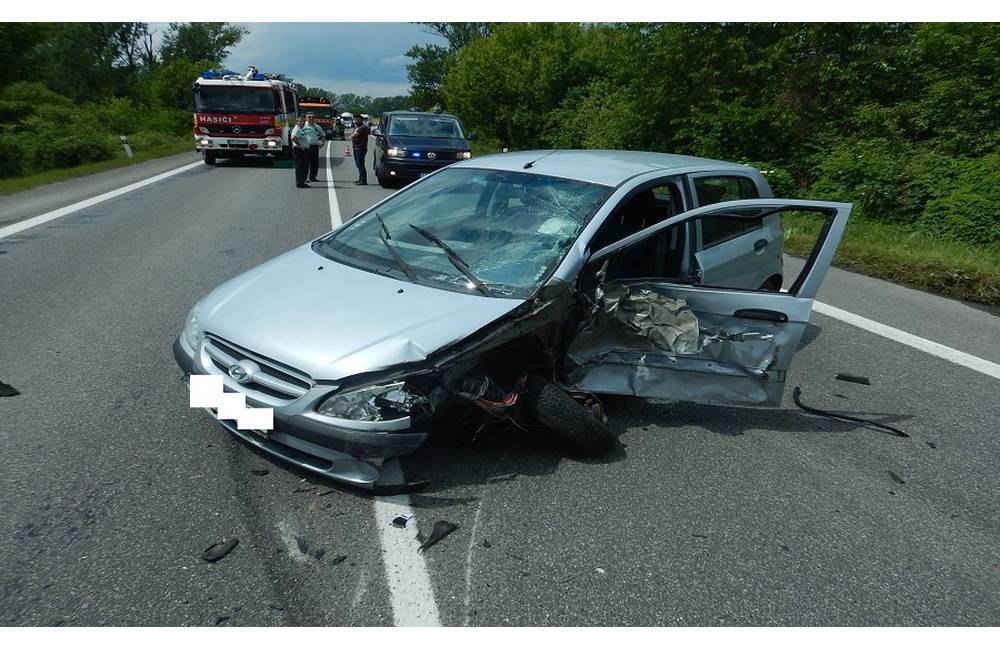 Žena, ktorá šoférovala osobné auto utrpela zranenia horných končatín a hlavy, sanitka ju previezla na ďalšie vyšetrenia do nemocnice.
