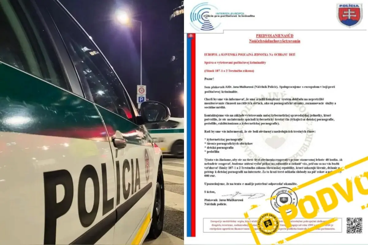 Polícia Slovenskej republiky varuje verejnosť pred novou vlnou falošných predvolaní, ktoré sa šíria prostredníctvom e-mailov. Podvodníci sa tentokrát snažia pôsobiť dôveryhodnejšie. V mene odosielateľa uvádzajú titul „Policajný Riaditeľ“ a zneužívajú aj meno policajnej prezidentky. Napriek tomu stále robia chyby, ktoré ich odhaľujú.