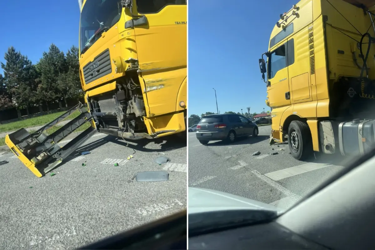 Na kruháči v Michalovciach sa zrazil kamión s osobným autom, smerom na Košice sa tvoria kolóny
