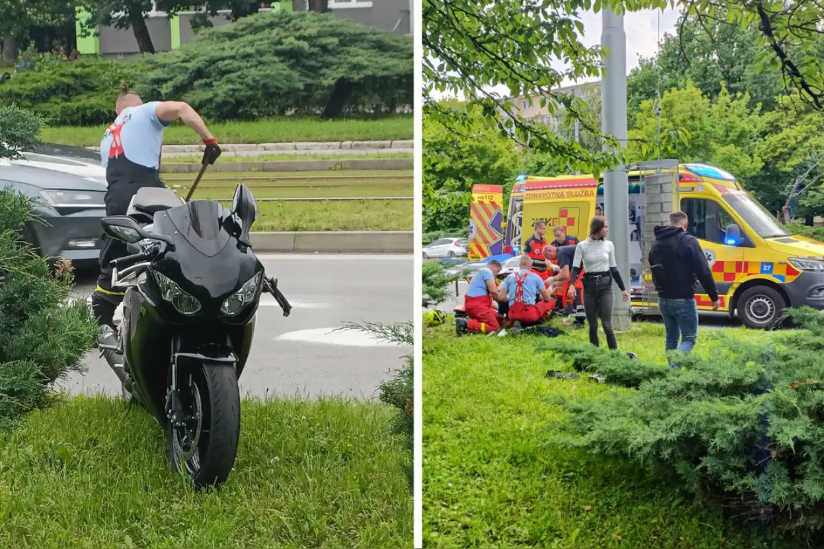 FOTO: Na Triede SNP v Košiciach mal motorkár nehodu, na mieste zasahovali zdravotníci