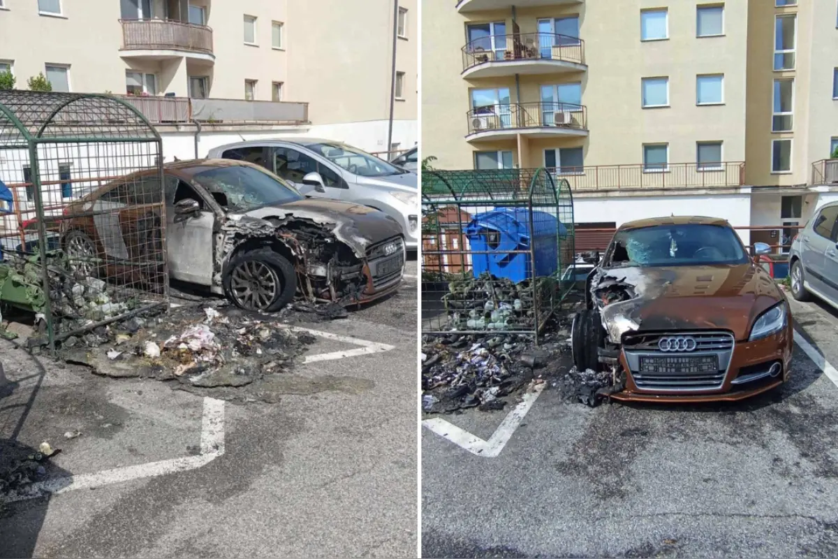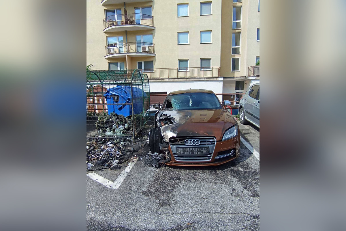 Majiteľovi Audi ostali len oči pre plač. Plamene z horiacich kontajnerov oproti kostolu na Furči zachvátili aj jeho auto