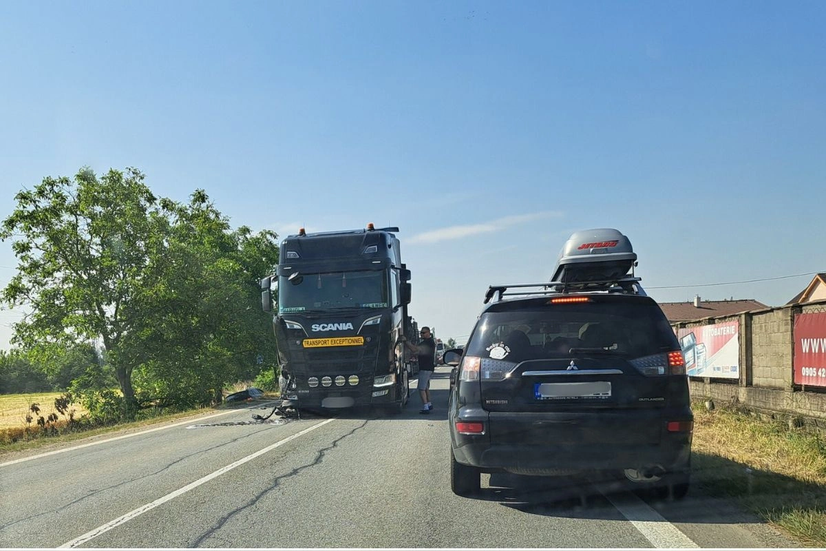 Na mieste došlo k zrážke osobného auta s kamiónom. Auto po incidente skončilo v priekope, z kamióna začala vytekať kvapalina. Na mieste sa nachádzajú aj záchranné zložky.