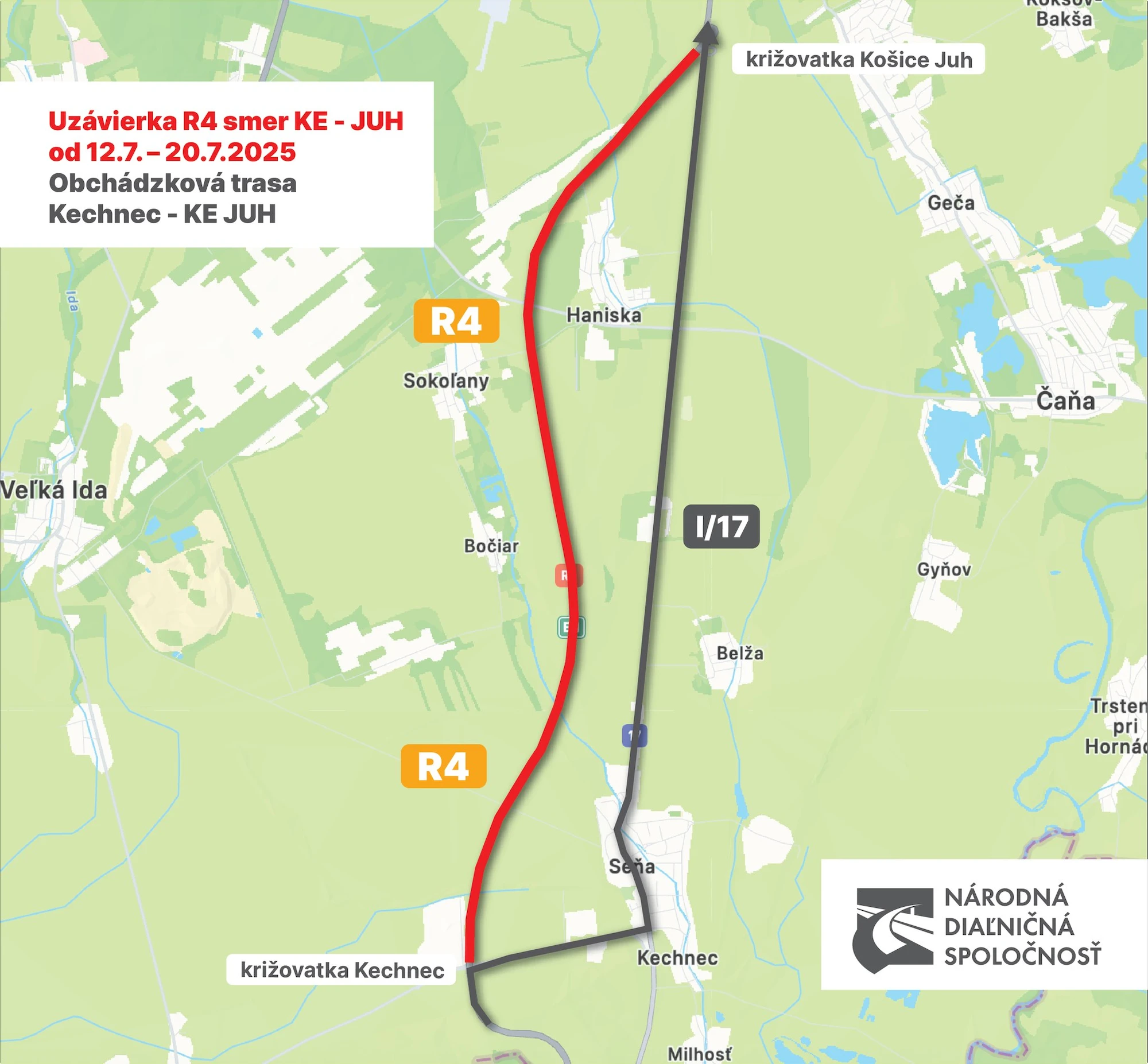 S obmedzeniami musia vodiči počítať na ceste R4 pri križovatke Kechnec od soboty od 08:00 hod., kedy obsadia úsek diaľničiari. Z toho dôvodu sa uzavrie pravý jazdný pás R4 smerom na Milhosť – Košice. V križovatke Kechnec sa doprava presmeruje cez priemyselný areál Kechnec na cestu I/17. Na obchádzku upozorní vodičov dopravné značenie.