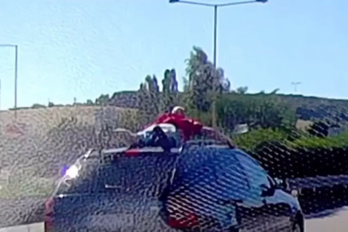 Muž sa na idúcom aute drží rukami len prednej časti. Aj keď šlo pravdepodobne o žart, situácia mohla dopadnúť veľmi tragicky. Takáto jazda je veľmi nebezpečná a je len šťastie, že sa nič vážne nestalo.