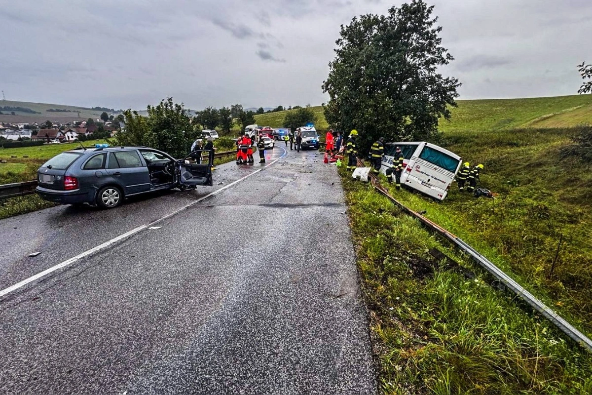 Z miesta nehody hlásia osem zranených, ktorých pomáhali dostať sa von z vozidiel hasiči. Zranených následne previezli do nemocnice. Podľa informácií od polície si zrážka vyžiadala aj jednu obeť, ktorou je spolujazdec z havarovaného auta. Príčinou nehody je zrejme šmyk, ktorý dostal auto do protismeru, kde došlo k čelnej zrážke s autobusom.