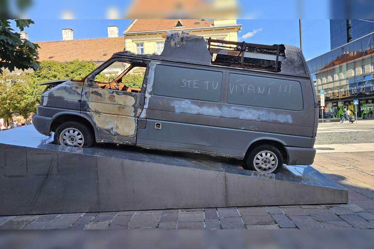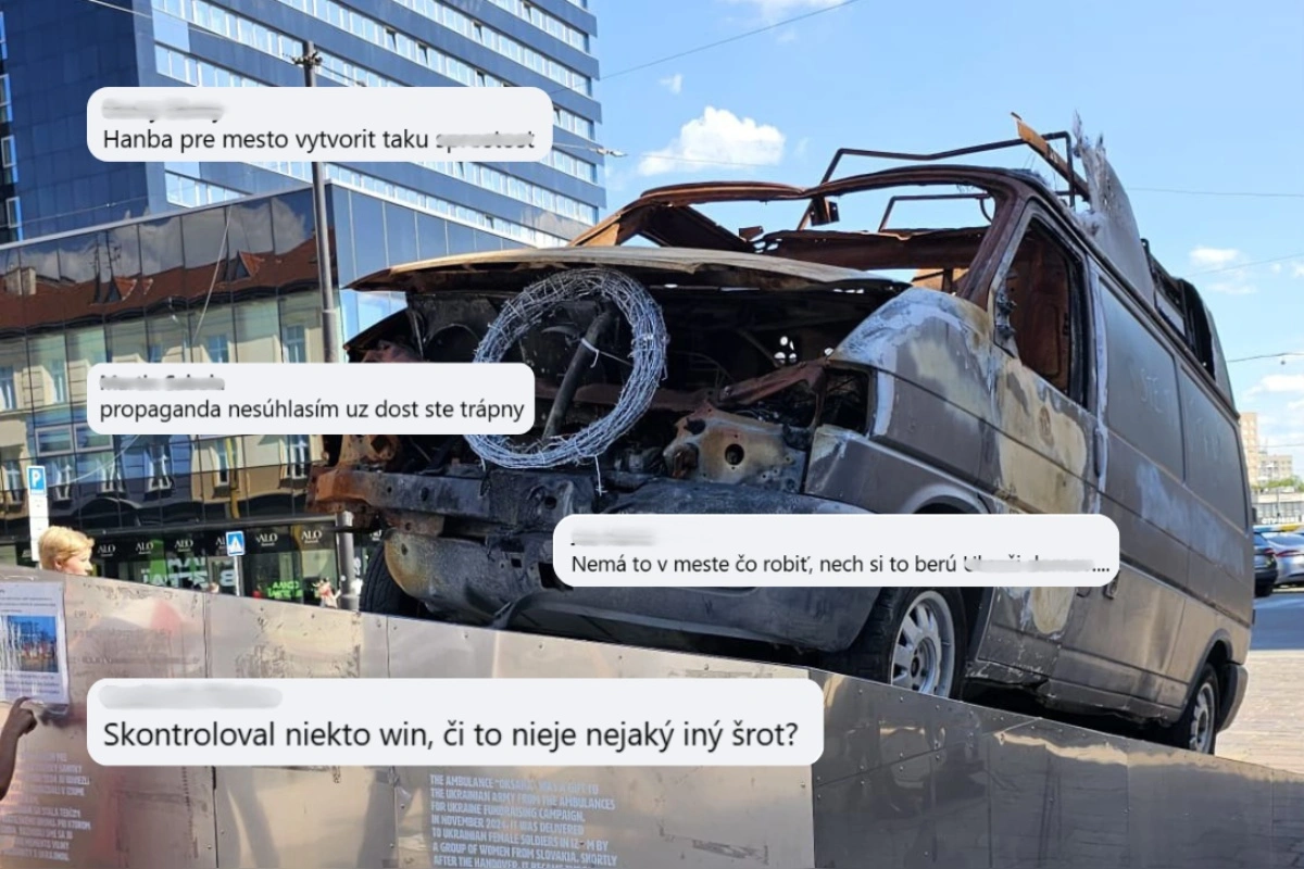 V Košiciach nainštalovali rozbombardovanú sanitku Oksanu z Ukrajiny, stala sa terčom hejterov
