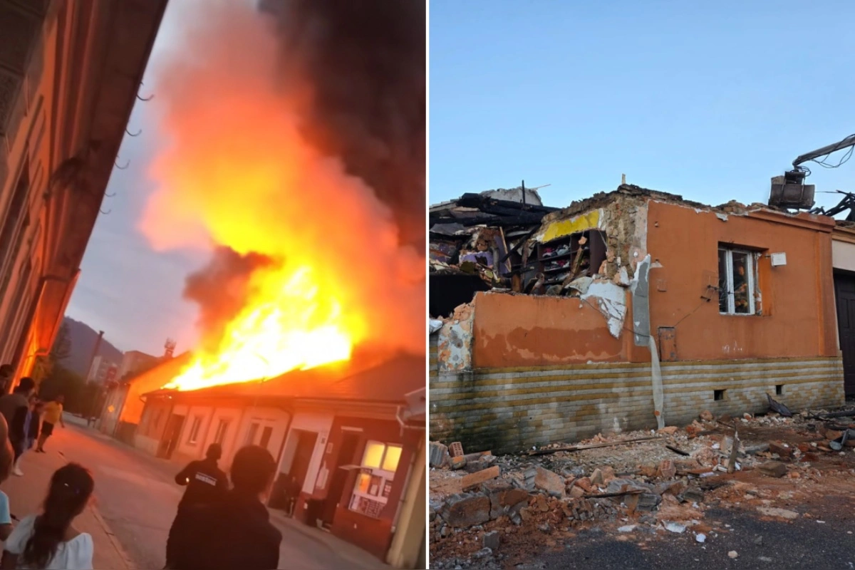 VIDEO: V Dobšinej pohltil oheň rodinné domy a miestnu vináreň. Jeden zo zasiahnutých domov zrovnajú so zemou