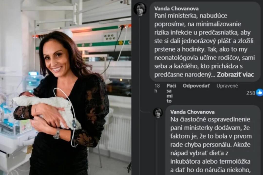Ministerku zdravotníctva Zuzanu Dolinkovú skritizovala pod jej príspevkom na sociálnej sieti primárka oddelenia neonatologickej intenzívnej medicíny v Detskej fakultnej nemocnici v Košiciach Vanda Chovanová.