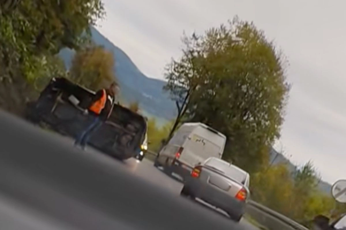 Za Krompachmi smerom na Margecany pozor na prevrátené auto v zákrute. Nehoda sa stala aj v Košiciach pri čerpačke Orlen