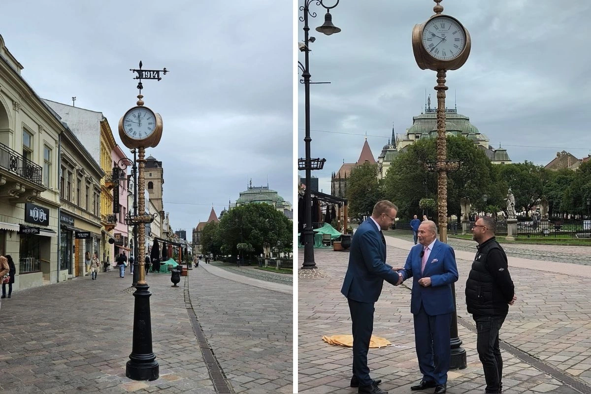 Historické hodiny v Košiciach na Hlavnej blízko Immaculaty po rokoch opravili, slávnostne ich odovzdali exprezidentovi