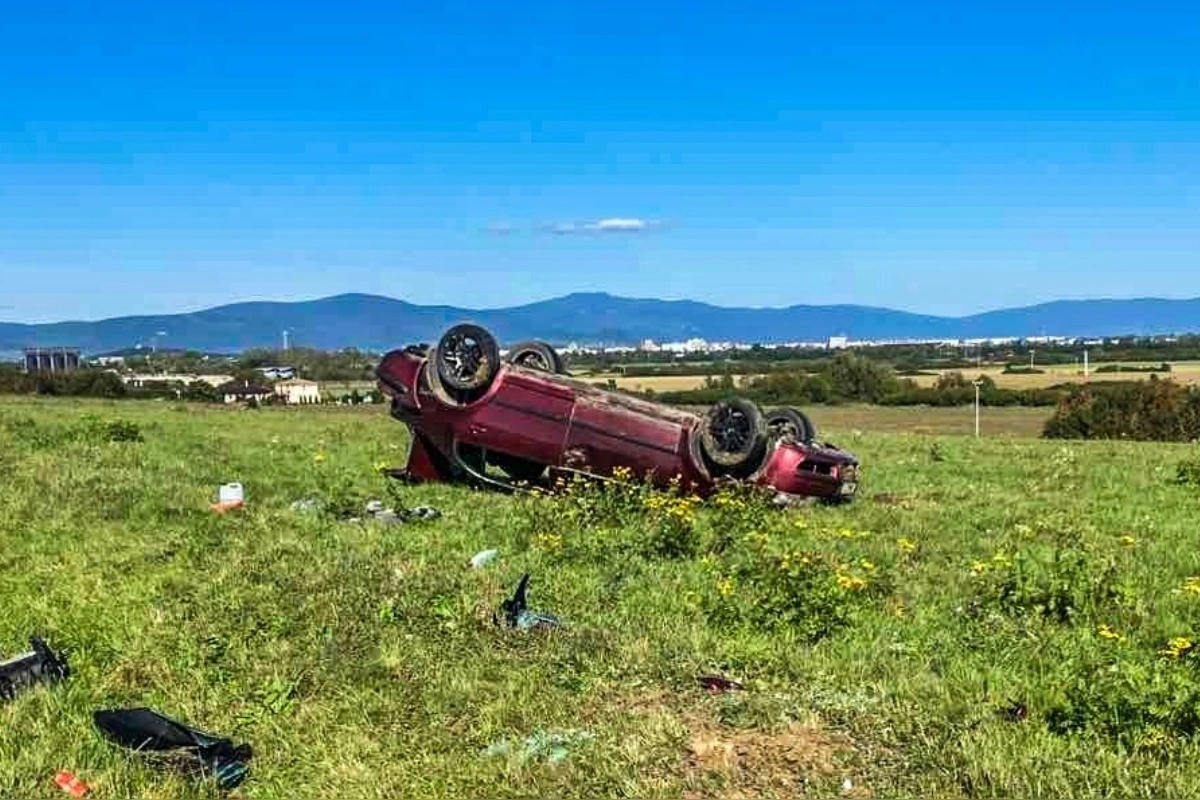 V okrese MIchalovce havarovalo v zákrute auto s deťmi, skončilo na streche, do nemocnice boli prevezení aj traja dospelí