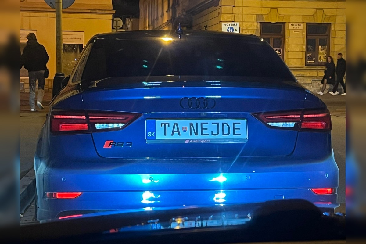 Na fotografii, ktorú pridal, je Audi RS3, športové auto s výkonom 400 koní. Majiteľ to však zobral s nadhľadom. Na svojej ŠPZ má napísané TA NEJDE, čo v spojení s výkonom auta pôsobí ako skvelý žart. K slovíčku „ta“, ktoré je typickou východniarskou vsuvkou, už netreba veľa dodávať, jednoducho humor po našom.