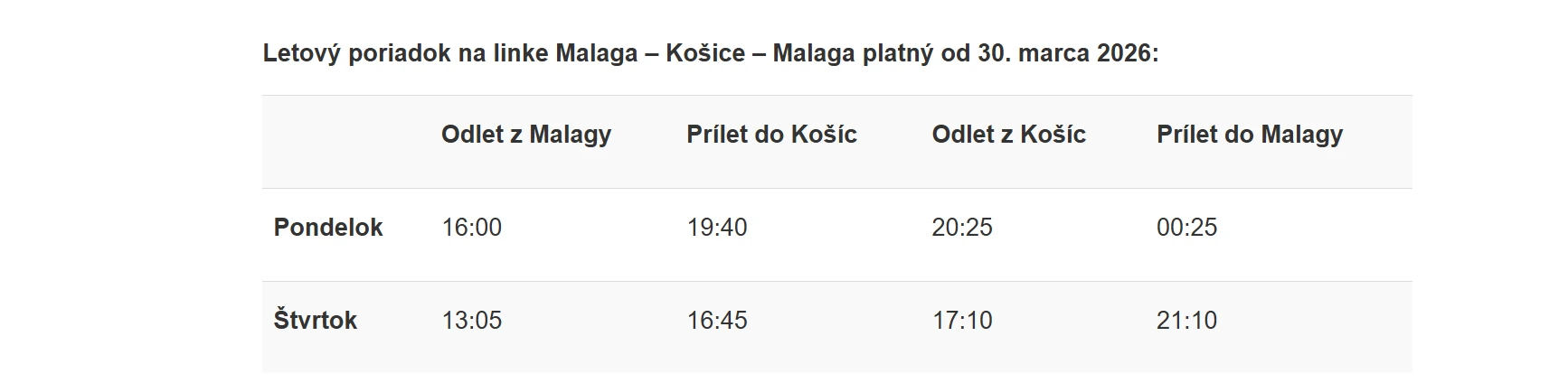 Lety budú premávať dvakrát týždenne – každý pondelok a štvrtok. Či už túžite po rýchlom úniku k moru, alebo po dlhšej dovolenke na slnečnom pobreží Costa del Sol, spojenie z východu Slovenska vám to umožní bez prestupov. Malaga láka nielen plážami, ale aj bohatou históriou, vynikajúcou gastronómiou a atmosférou typického španielskeho temperamentu.