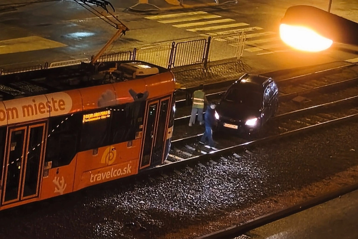V centre Košíc skončilo auto na koľajniciach, električka do Barce nepremáva