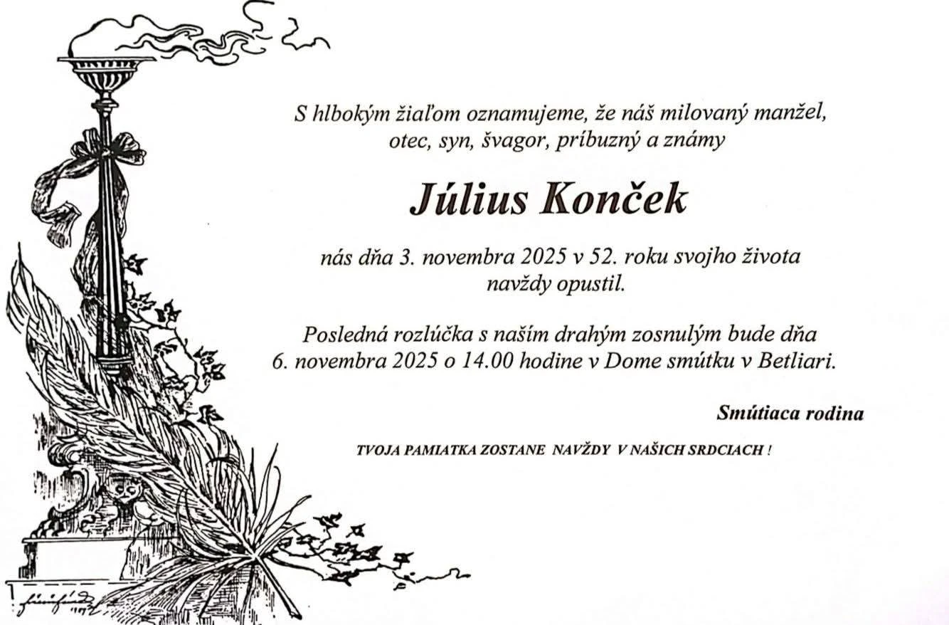 Rozlúčka s Júliusom Končekom sa uskutoční 6. novembra o 14:00 hod. v Dome smútku v Betliari. Jeho odkaz a energia však zostanú žiť v mladých jazdcoch, ktorým otvoril cestu do sveta pretekania.