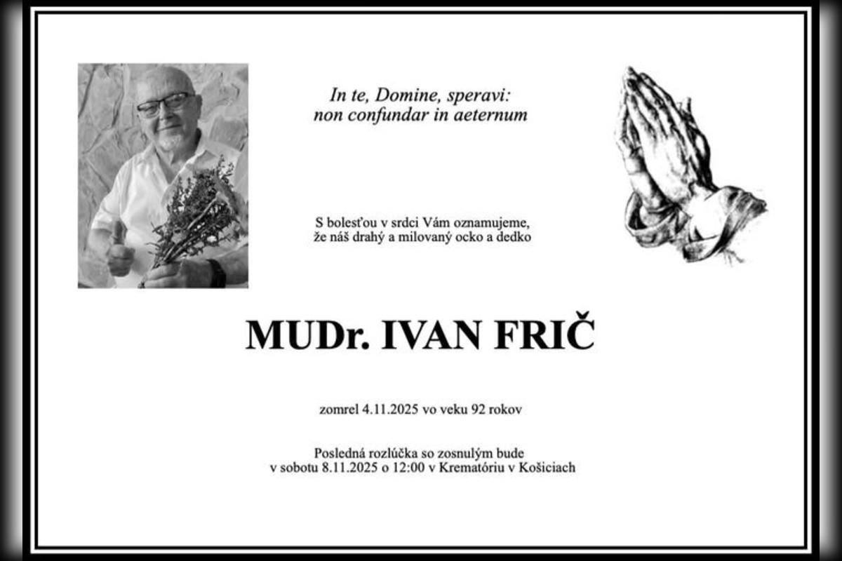Košická neonatológia prišla o jednu zo svojich najvýraznejších osobností. Vo veku 92 rokov zomrel Ivan Frič, dlhoročný primár Neonatologického oddelenia Detskej fakultnej nemocnice v Košiciach a jeden zo zakladateľov perinatológie na Slovensku. Celý svoj profesijný život zasvätil starostlivosti o tých najzraniteľnejších – chorým novorodencom, ktorým dával šancu na život aj v časoch, keď boli možnosti medicíny omnoho skromnejšie.