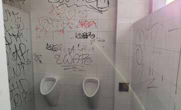 Vráťte nám záchodovú dosku, ktorú ste si požičali, píše oznam na verejných toaletách. Nájdete tam však aj čosi iné