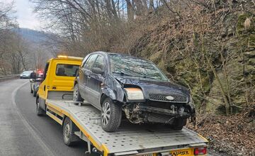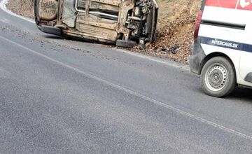 Pri kameňolome v smere do Družstevnej zostalo po nehode prevrátené auto, mala v ňom sedieť žena s dieťaťom