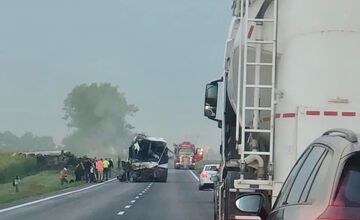 Tragická nehoda pri Drienovci: Zrazil sa kamión s autobusom, vodič to neprežil, jeden cestujúci bojuje o život (FOTO)