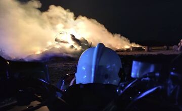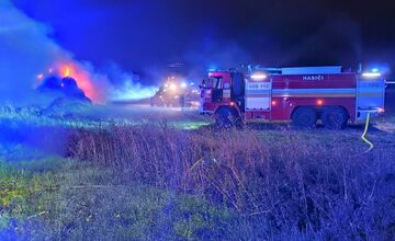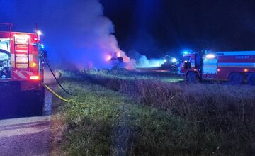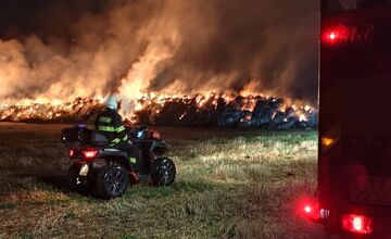 VIDEO: Ohnivé peklo neďaleko Sečoviec, zhorelo skoro 2000 balíkov slamy, hasiči bojovali s plameňmi celú noc