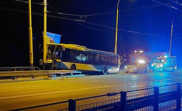 V Košiciach havaroval nočný autobusový spoj, skončil vo zvodidlách mimo cesty a narazil do stĺpa