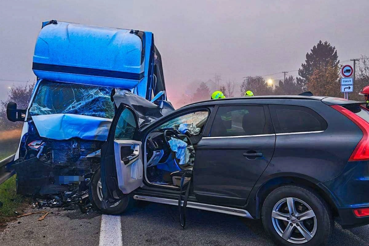 Čelná zrážka osobného auta a nákladiaku uzavrela cestu pri Turni nad Bodvou, obaja vodiči skončili v nemocnici